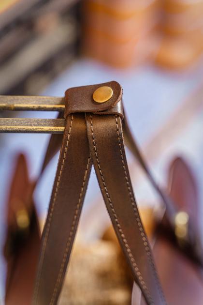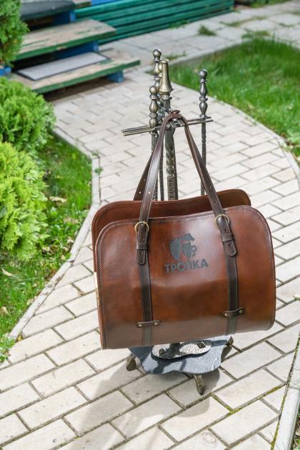 Легкая и удобная сумка среднего размера из натуральной толстой кожи для переноски дров. Это удобный мобильный аксессуар для переноса и хранения дров и украшение интерьера. Для удобства хранения ручки застёгиваются на кнопку.