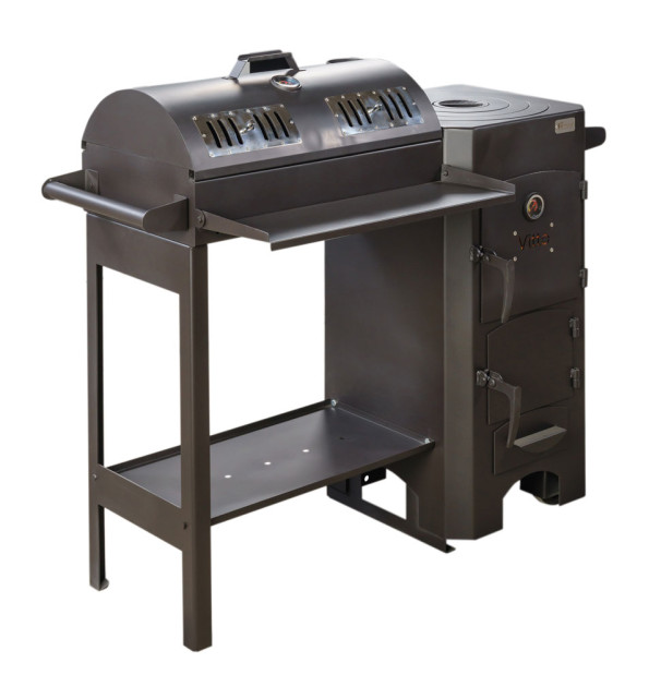 - Объединяет в себе барбекю / гриль / мангал / коптильню / духовку и печь для казана.