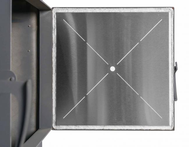 Объём первичного воздуха, подаваемого в топку, регулируется заслонкой, расположенной над дверцей розжига.Объём вторичного воздуха регулируется автоматически при изменении объёма первичного воздуха.
