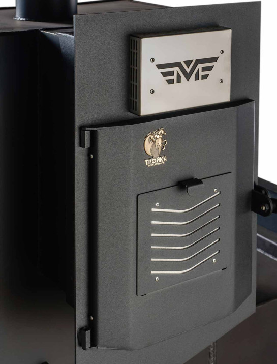 Толстый металл корпуса (10-40 мм) и усиленная конструкция рассчитаны на многолетнюю службу даже в условиях интенсивного использования. Большой диаметр дымохода гарантирует стабильную тягу, а ревизионный лючок упрощает обслуживание.