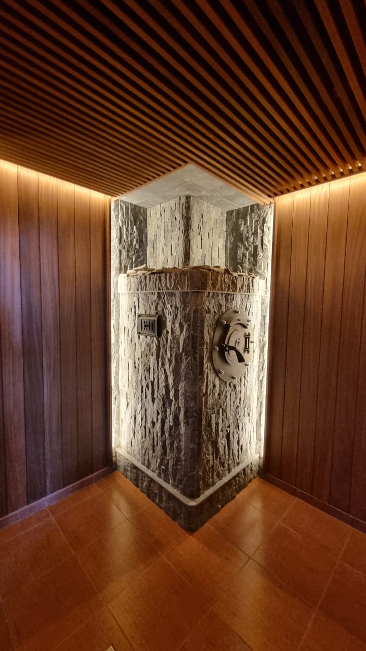 · Технологии для эталонного пара. Закрытая каменка и нагрев камней с 5 сторон создают условия для получения легкого «невидимого» пара. Подача воды через паровую пушку в нижнюю раскаленную зону (500+°С) мгновенно генерирует насыщенное облако.