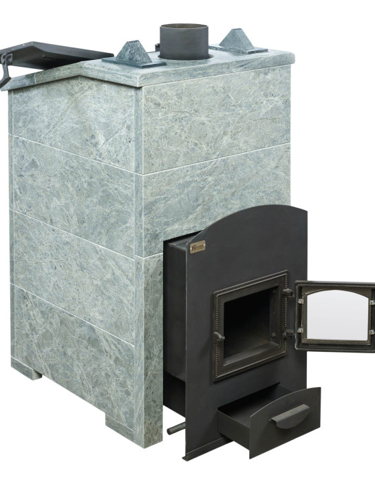 Особенности печи №04-М для русской бани в талькохлорите с закрытой каменкой: