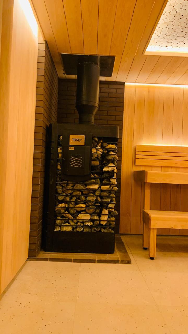· В комплекте — высокотемпературный парогенератор. Это позволяет создавать идеальный микроклимат, комбинируя несколько видов пара: сухой легкий пар от парогенератора , насыщенный от паровой пушки и более густой и влажный от закрытой каменки.