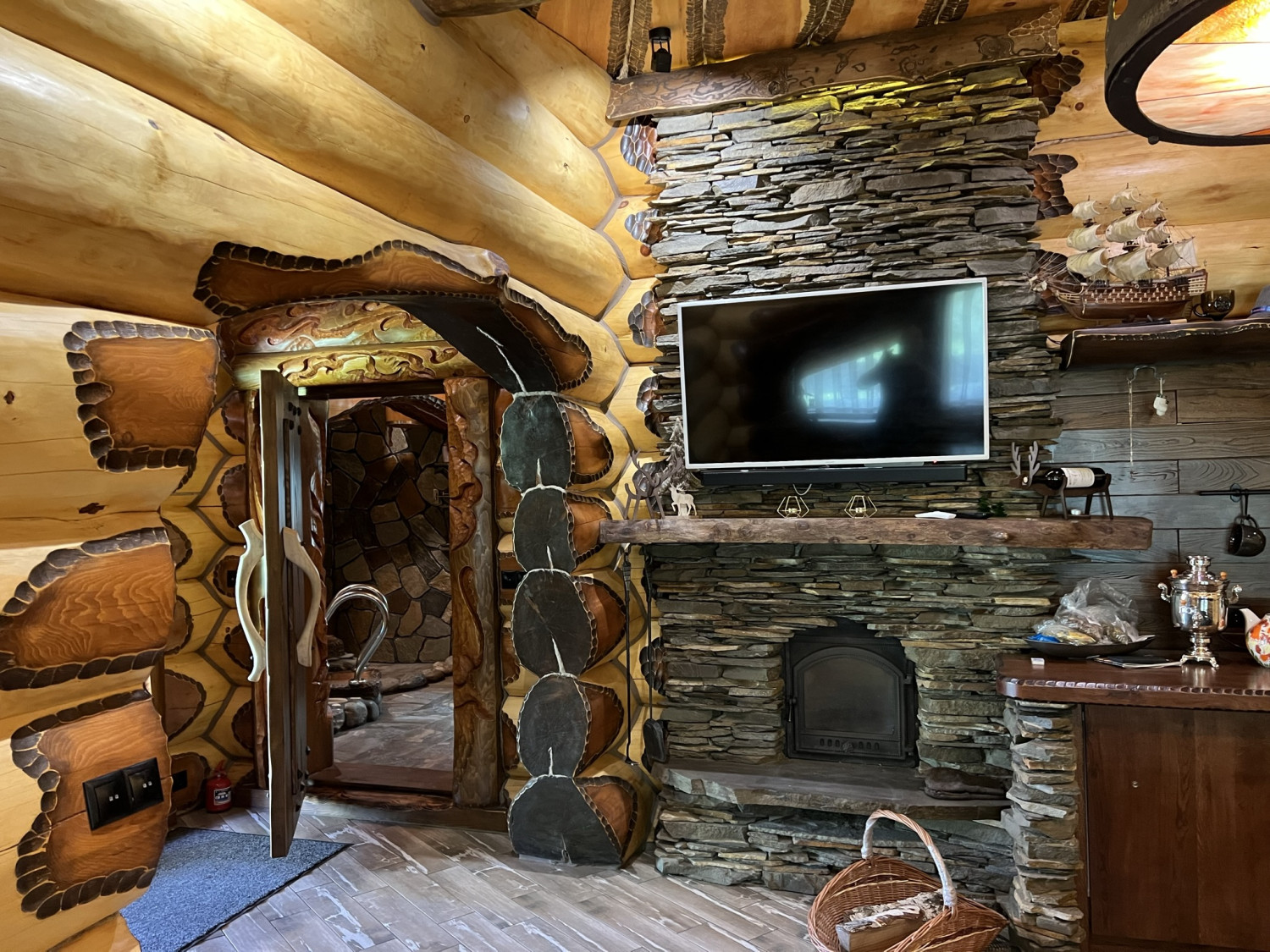 · Дизайнерская дверца каменки.